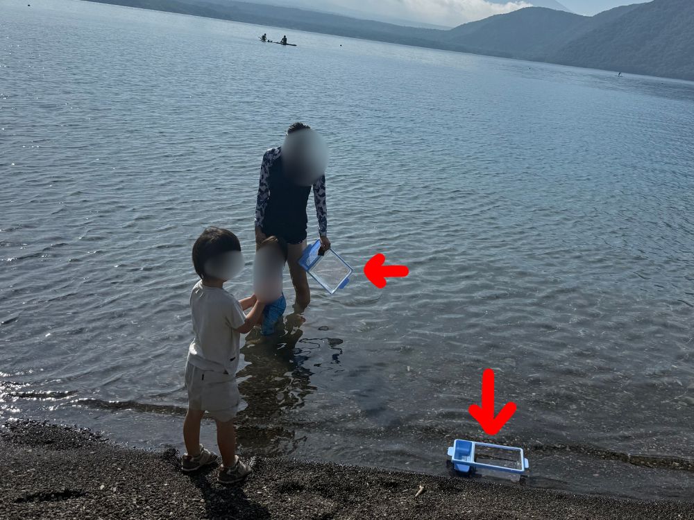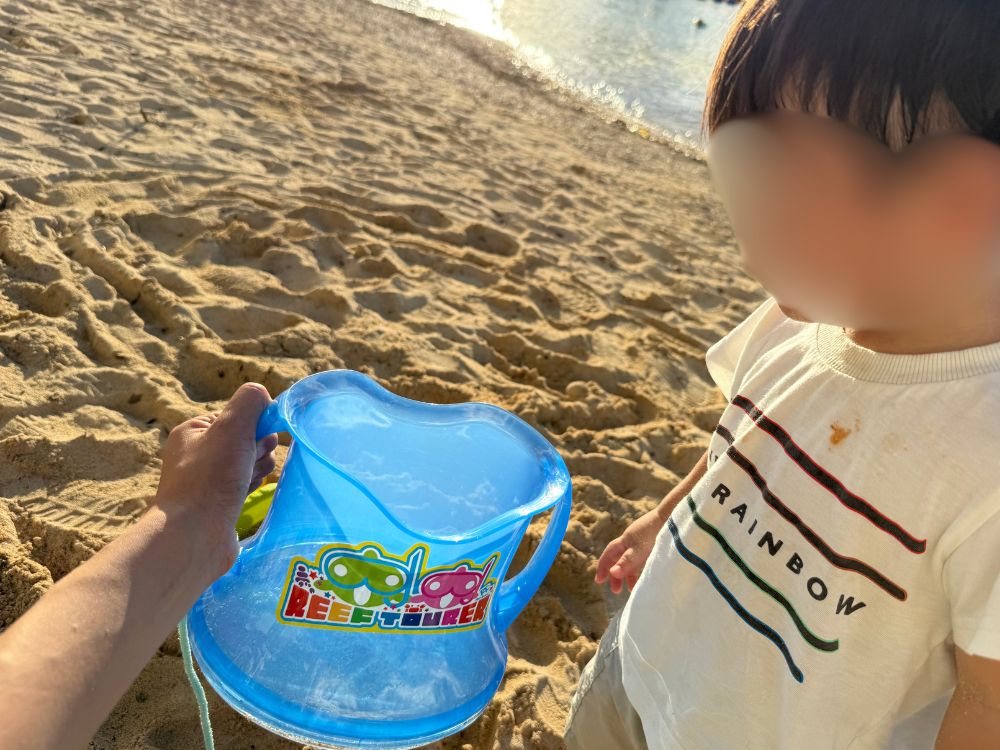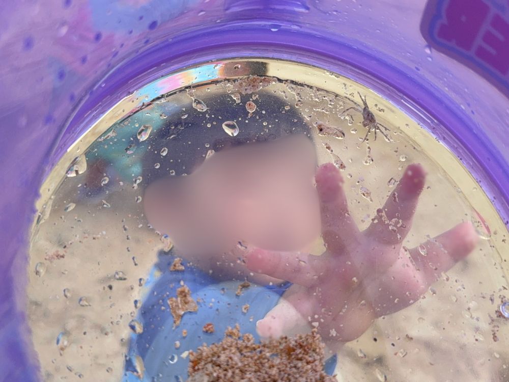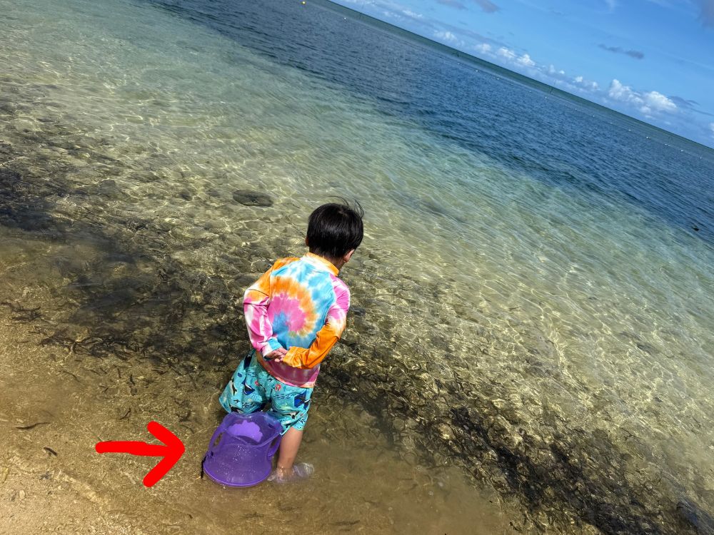 水の中を観察するのもよし!好きな生き物や拾ったものを入れるのもよし!我が家の子供たちが砂で遊んでいる中、気がついたら私とよそのお子さんで必死にカニを集めていました(笑)