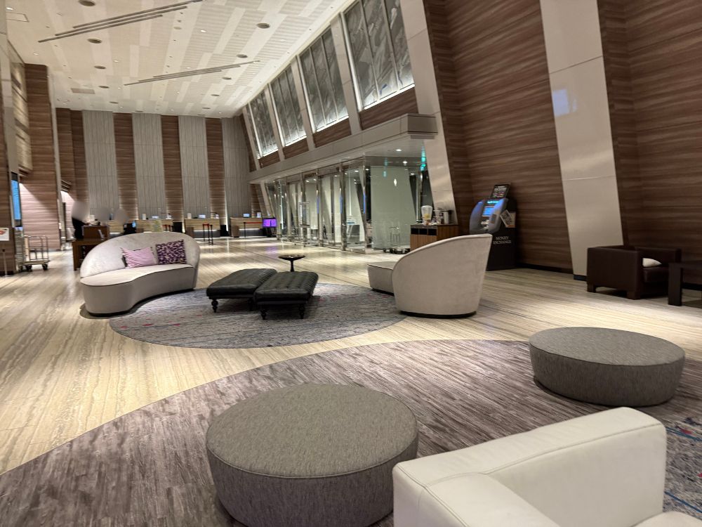 広々として開放的なロビーに到着。ソファーも大きくて素敵です。