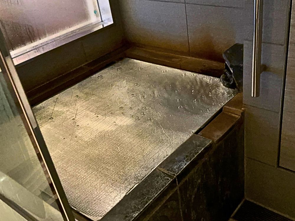お風呂はお湯が冷めないように、またお部屋の湿気対策としてアルミの蓋がされていました。部屋付きのお風呂はこの様な感じです。