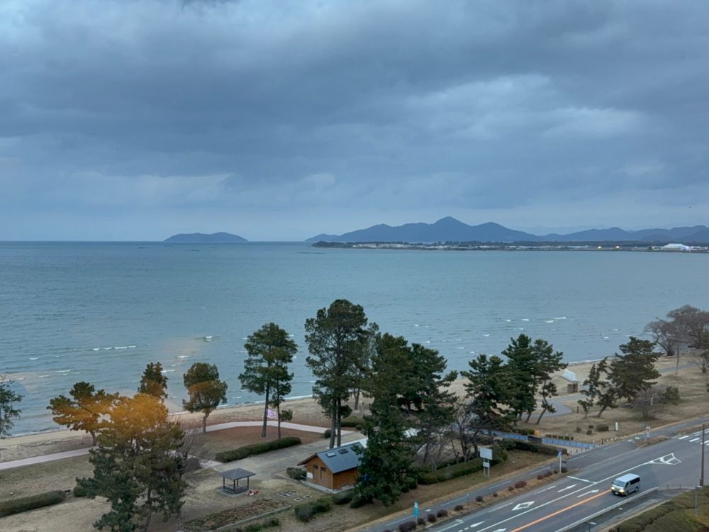窓から琵琶湖が一望できました。お部屋に到着したのは夕方だったのですぐに暗くなってしまいました。