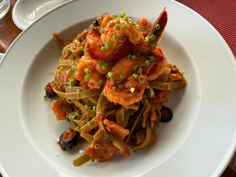 パスタもおしゃれで美味しかったです。特にシーフドではエビが丁寧に調理されていて、臭みがなくピリ辛にいただきました。