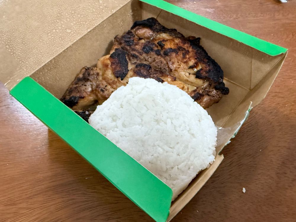 200ペソ程度でこんな感じのボックスでライスとセットで出てきます(単品も可)。フィリピンの鳥は基本骨付きのようで、炭火の香りと相まって絶品。