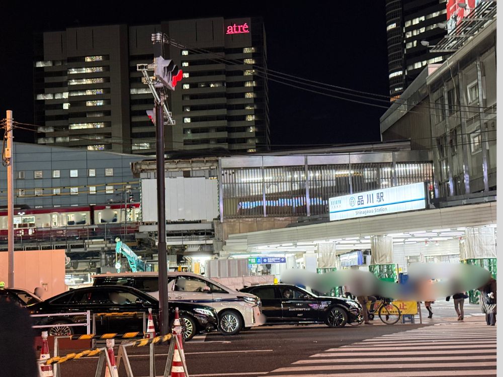 品川駅の高輪口、京急改札口を出て左に進むと大きな横断歩道があります(夜の画像ですみません)。