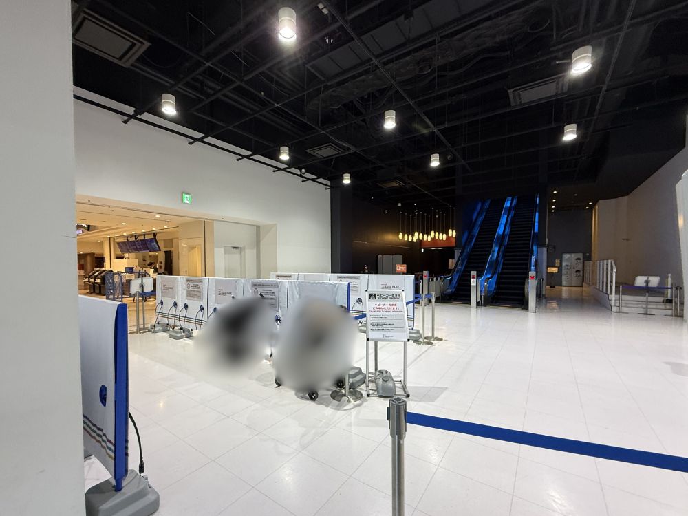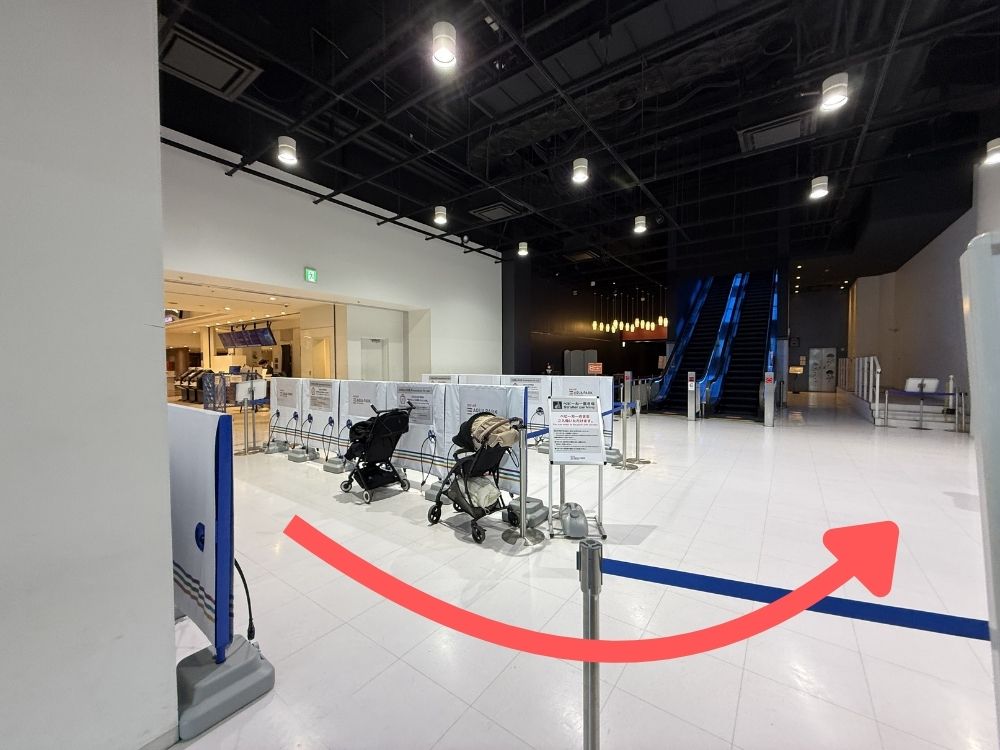 ベビーカー置き場は広々とありました。ロックもできます!しながわ水族館は外に置くだけだったので、こちらはさすが大都会ですね。