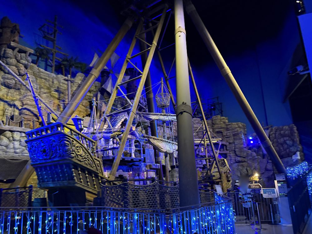 人が乗らないともちろん動きませんが、私たちが入場した時はちょうど稼働中。長男はビビりまくって「入りたくない!」となってしまいました。
