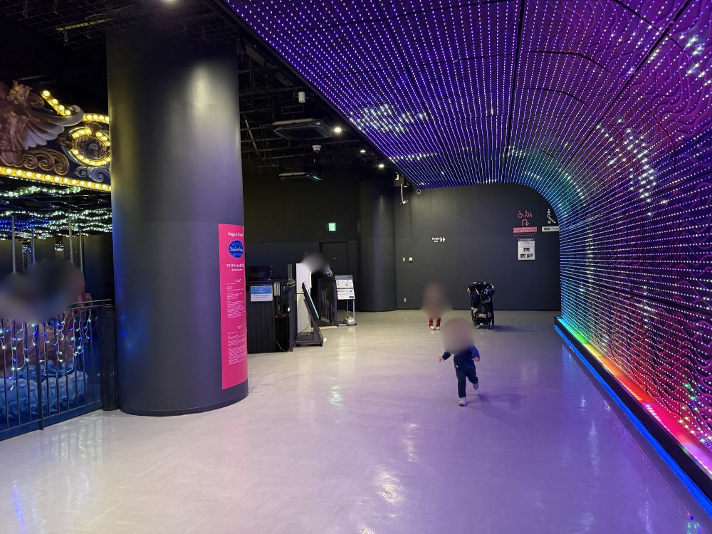 スロープをおりるととても綺麗なエリアが!水族館とチームラボの融合です!