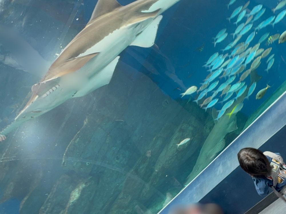 ワンダーチューブというエリアには世界で唯一ドワーフソーフィッシュ(ヒメノコギリエイ)が展示されています。とっても大きい!そして一匹じゃない!マンタや他のエイもたくさんいました。