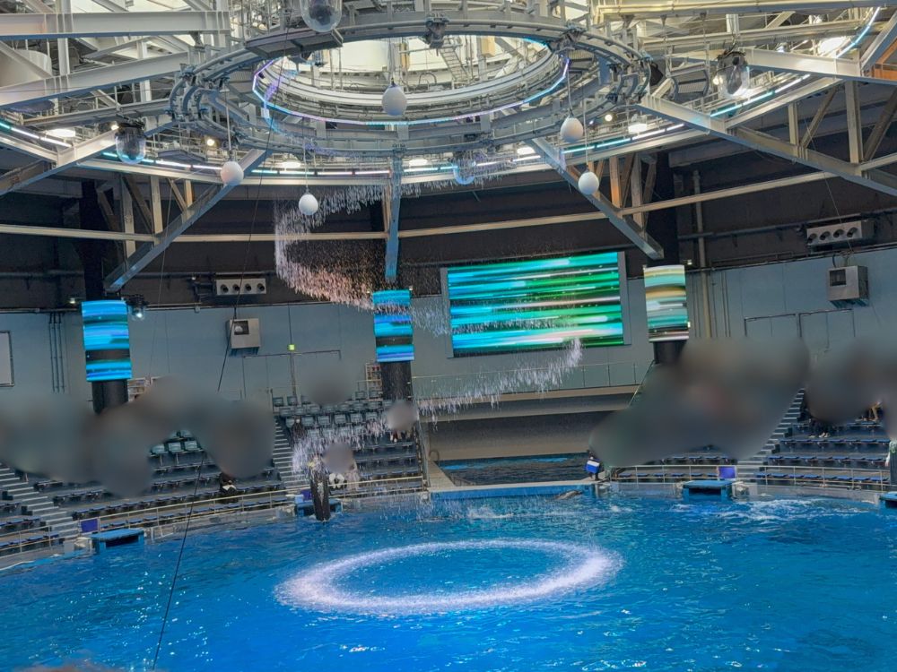 ちなみに置き場はイルカショーの水槽の周りに2箇所あります。