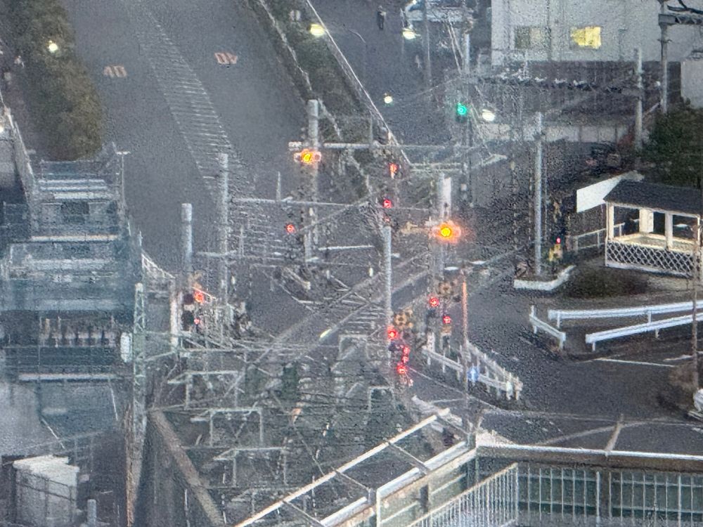 開かずの踏切が見えます。この辺りはトレインビュースポットとして有名な様ですね。