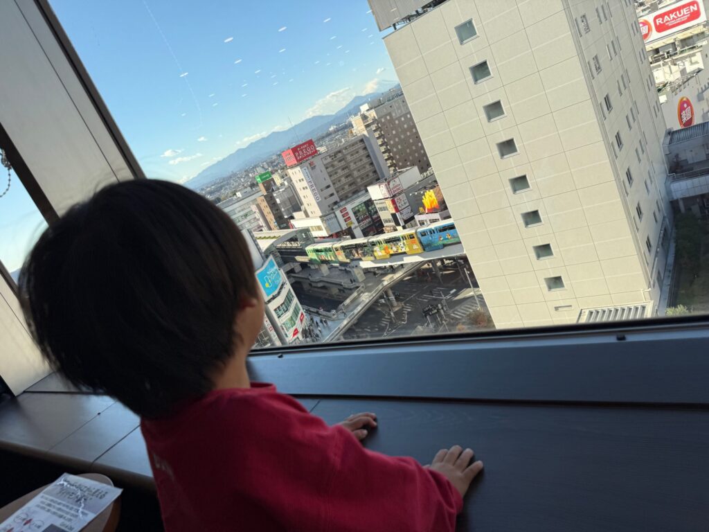 立川は中央線と青梅線のハブであり多摩都市モノレールも走っています。また、横田基地が近いからか航空機も見えることが多いです。窓から見える乗り物がとても多く、乗り物好きの子なら飽きずに楽しめます!