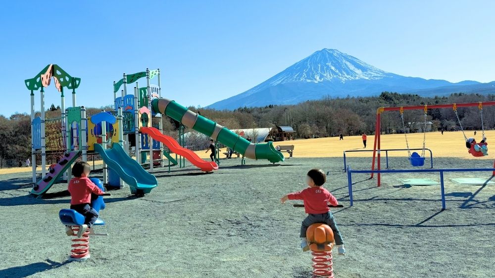 鳴沢村活き活き広場には展望台やたくさんの遊具があります。 目の前に富士山が広がりとにかく景色が最高!天気がいい日は本当におすすめです。