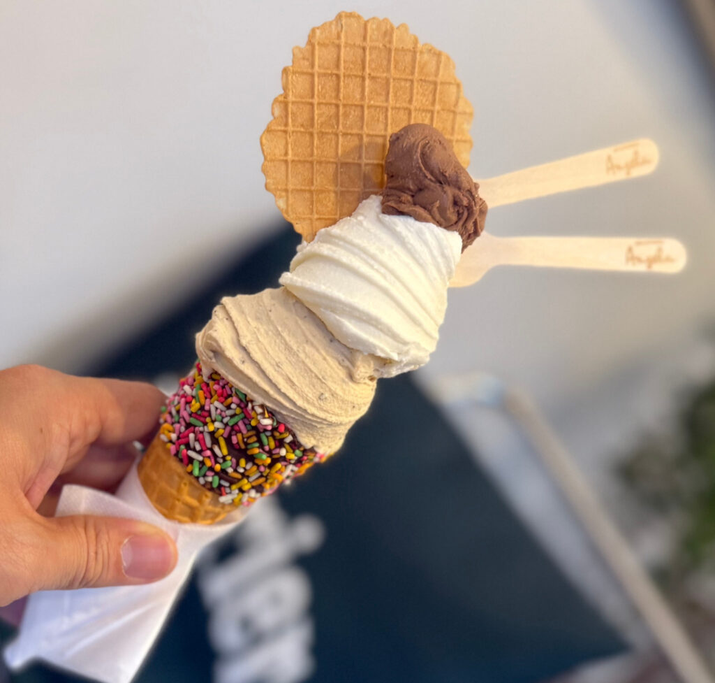 お出かけすると必ず「アイス食べたい!」と言ってくる長男。道の駅なるさわの富士桜ソフトクリームは桜から抽出した本格派でおすすめですが、今回は初めての場所に行こうと思い、ドライブがてら西湖を経由してお昼寝後にGelateria Angelaさんに立ち寄ってみました。
